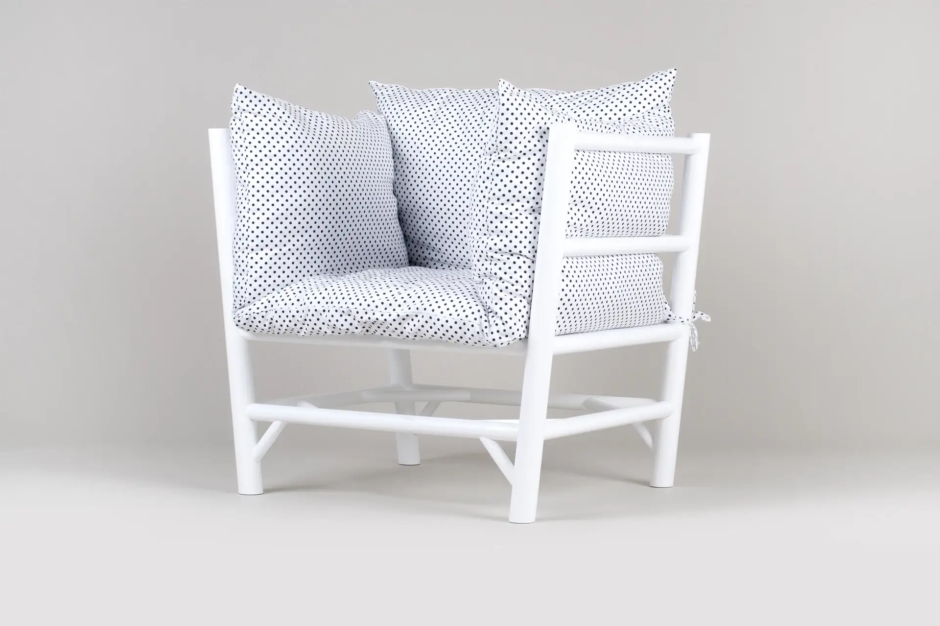 Vizuálny charakter kresla čerpá z rytmu rebrovaných senníkov a subtílnych drevených stavieb našich predkov. Táto inšpirácia sa pretavila do ľahkej bielej konštrukcie s priznanými opornými prvkami, ktoré jej dodávajú architektonickú čistotu a eleganciu. Biela farba zjednocuje jednotlivé rebrá a necháva vyniknúť hru tieňov a svetla v jeho konštrukcii.