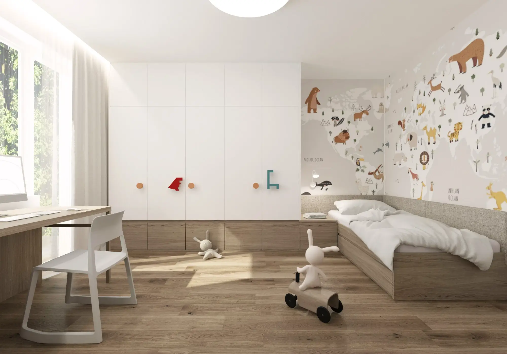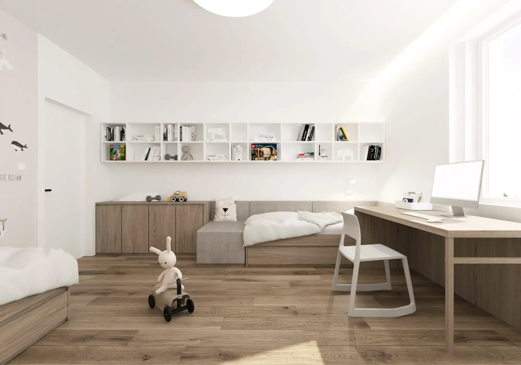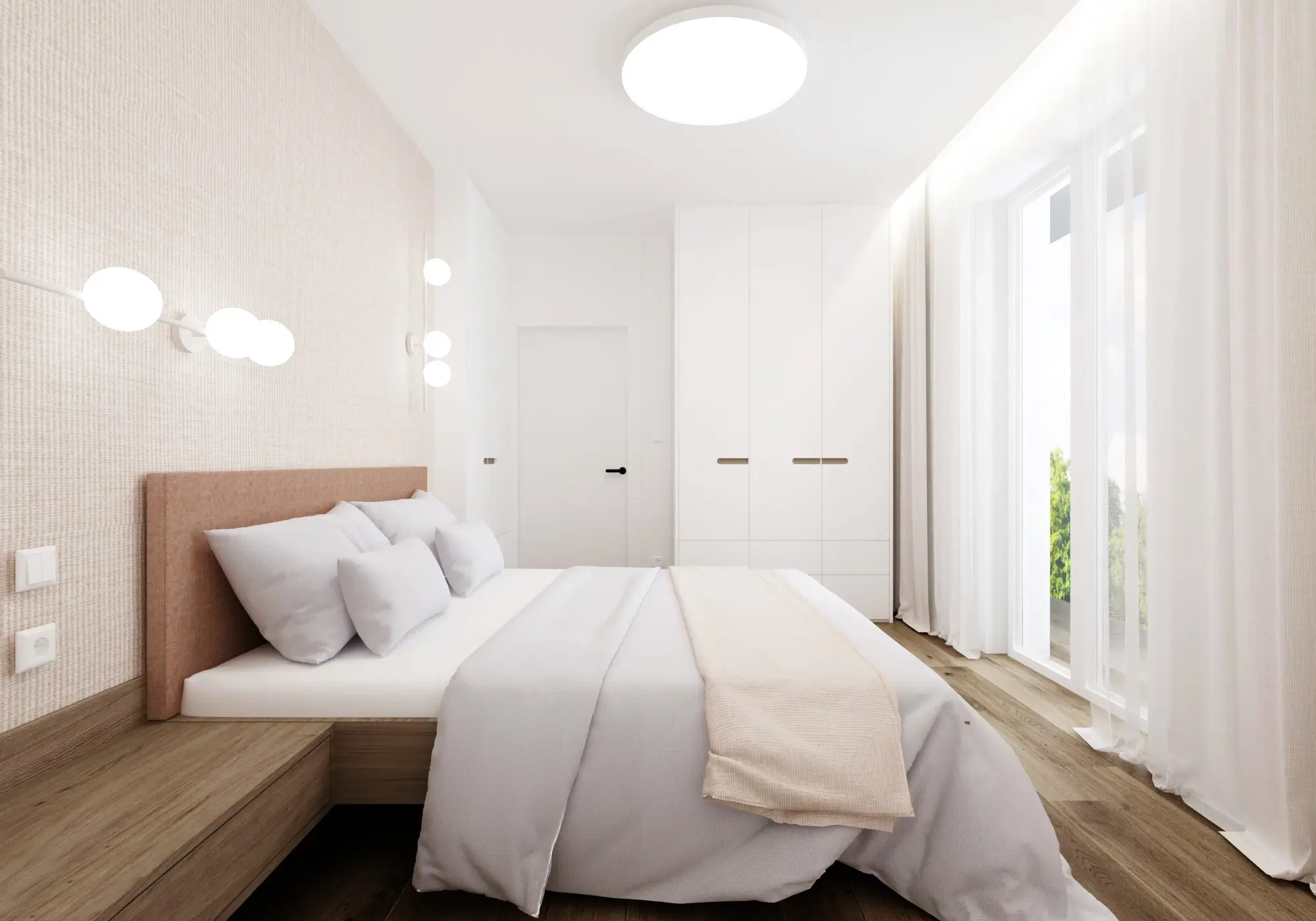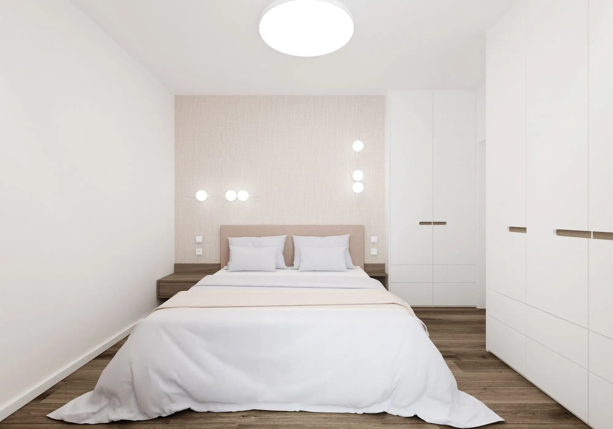 Aby vynikol charakteristický červený solitér, zvyšok interiéru sme ponechali v pokojných neutrálnych tónoch. Čisté línie, svetlé povrchy a prírodné textúry vytvárajú vyvážené pozadie, vďaka ktorému pôsobí byt vzdušne, moderne a napriek svojej farebnej odvahe veľmi harmonicky.